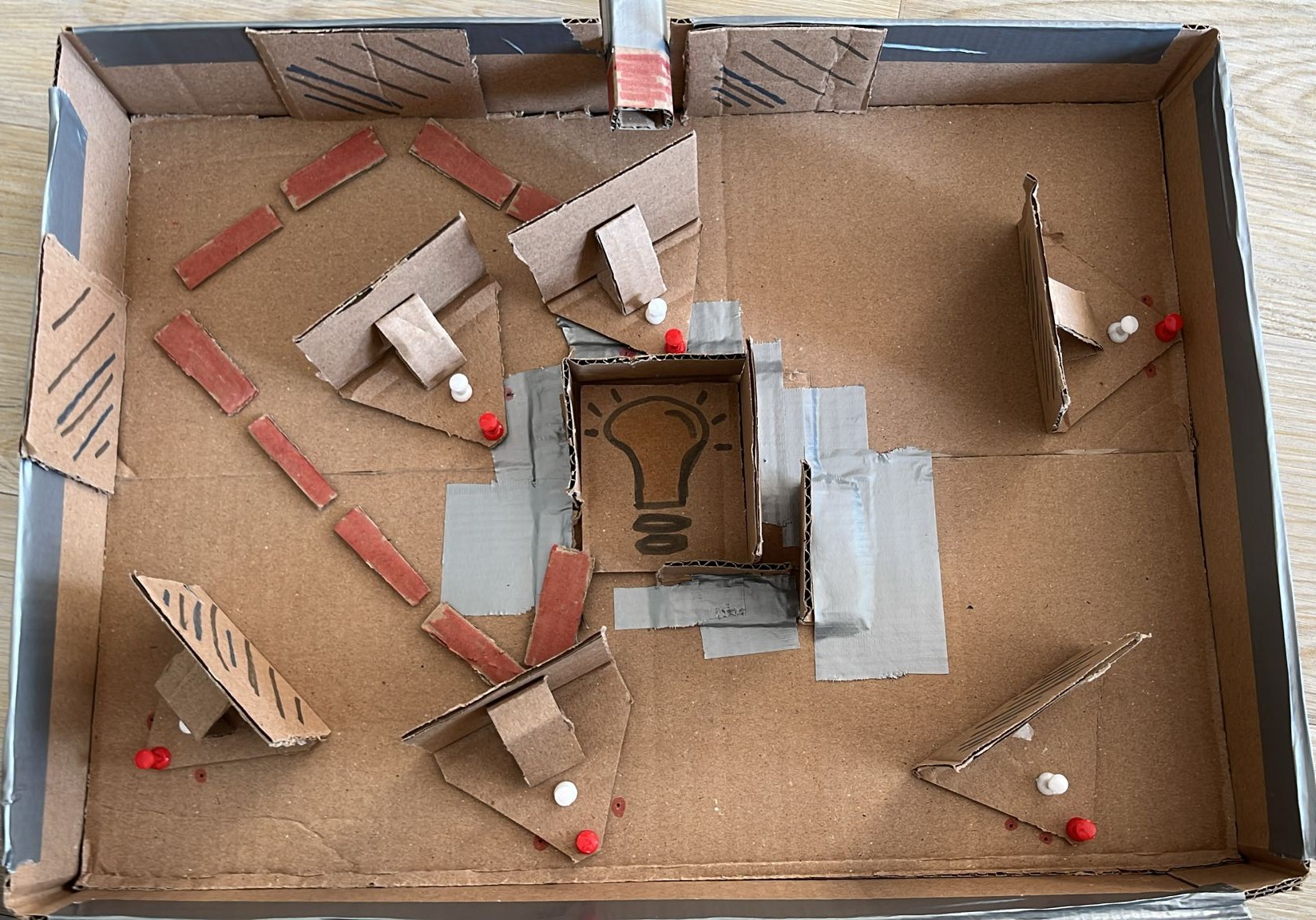 Video showing gameplay from the late-June prototype | ![]() Early cardboard prototype from the concept phase |