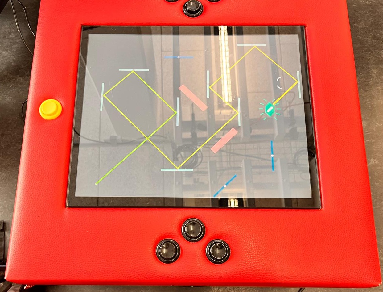The game is built for the KUTI Gaming Table, featuring a 1280×1024 px, 5:4 TFT display and an integrated Raspberry Pi 3B. In the final version, the game will run natively on the Pi.