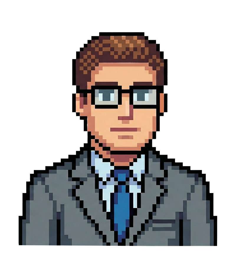 Der Vorgesetzte im Spiel ist auch in einem 8-bit Design und soll einen typischen Büromitarbeiter repräsentieren. Er trägt einen Anzug und eine Brille.