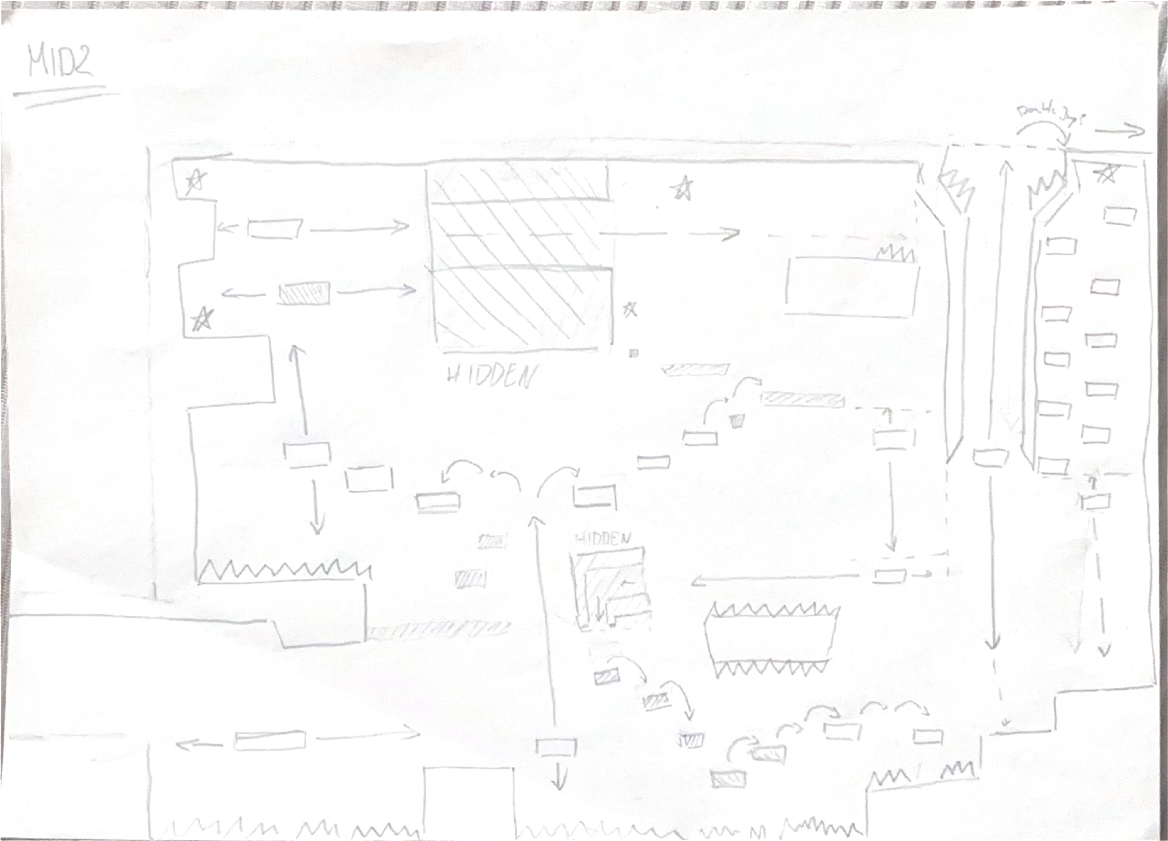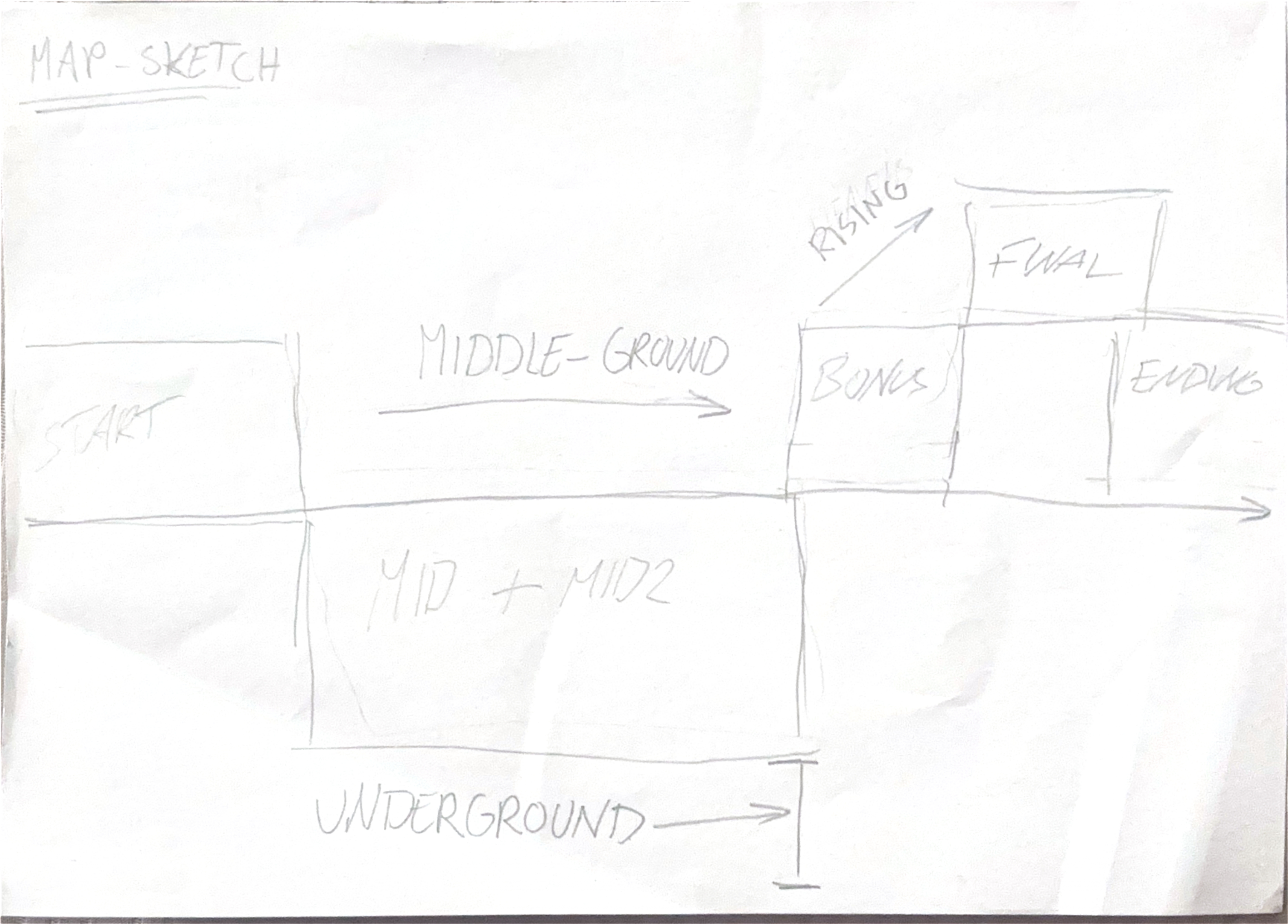 Im Endeffekt haben wir gemerkt, dass wir einfach Alt. MID und MID2 kombinieren könnten, wobei Alt. MID statt innerhalb, außerhalb der Höhle beginnt und den Startsektor bildet. MID2 deckt dann den gesamten Underground Bereich ab. Das Konzept wurde nicht 1:1 übernommen, sondern unseren Fähigkeiten nach angepasst und umstrukturiert wobei die Basis erhalten blieb.