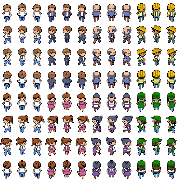 Da niemand von uns zeichnen kann und wir uns gegen einen anderen Weg des Artdesigns entscheiden haben, sind alle unsere Charactersprites und Characterdesigns von free to use assets zusammengestellt.