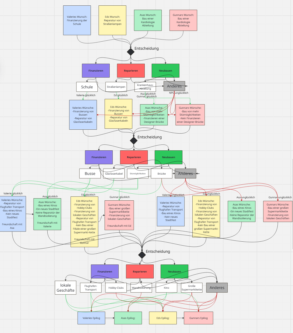 | Abstimmung | Bürgermeister im Café ansprechen → Wahl zwischen verschiedenen Optionen treffen |