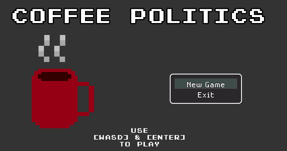 Coffee Politics ist ein storybasiertes Spiel, in dem der Spieler ein kleines Café in einer Kleinstadt besitzt. Neben der normalen Kundenbedienung muss dabei besonders auf die Wünsche und Bedürfnisse der Gäste geachtet werden. Denn bei einer vom Bürgermeister initiierten Bürgerabstimmung gilt es, die richtigen Entscheidungen zu treffen, um eine zufriedene Gesellschaft zu erhalten.
